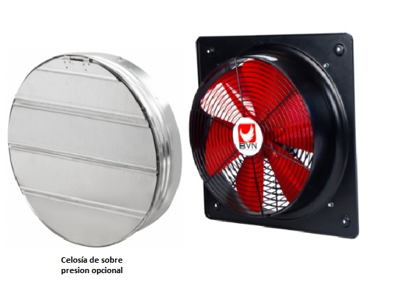 Extractores axiales con hélices metálica de motor monofásico (BSMS) o trifásico (BSTS). Chasis cuadrado de fierro de 1,5 mm de