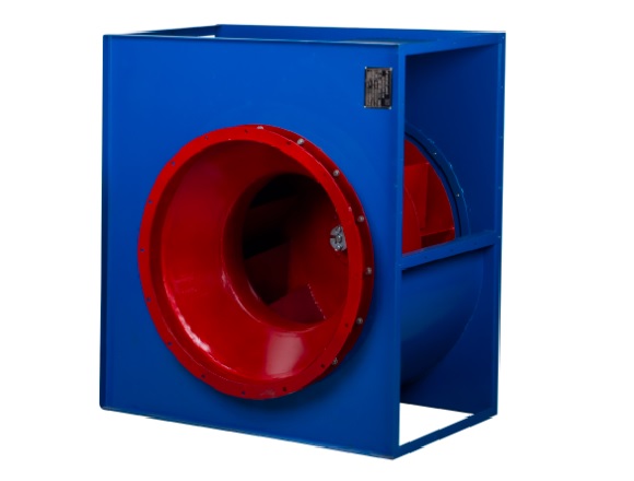 Extractor centrífugo compacto de simple aspiración montado sobre chasis rígido de rotación: 0°, 90°, 180° y 270°, lo que permite direccionar la descarga de aire, chapa en acero electro pintada de 4 milímetros de espesor. Álabes inclinados hacia atrás autolimpiantes, montados sobre rodete balanceado dinámicamente, especialmente diseñado para trasegar gases de cocinas industriales conteniendo humo y partículas de grasa. Eje accionado a transmisión directa. Boca de succión en flanche de chapa de acero para atornillar a fuelle y ducto.