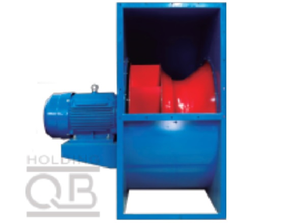 Extractor centrífugo compacto de simple aspiración montado sobre chasis rígido de rotación: 0°, 90°, 180° y 270°, lo que permite direccionar la descarga de aire, chapa en acero electro pintada de 4 milímetros de espesor. Álabes inclinados hacia atrás autolimpiantes, montados sobre rodete balanceado dinámicamente, especialmente diseñado para trasegar gases de cocinas industriales conteniendo humo y partículas de grasa. Eje accionado a transmisión directa. Boca de succión en flanche de chapa de acero para atornillar a fuelle y ducto.