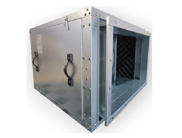 Caja de extracción centrífuga construida en chapa de acero galvanizada de 0.8 mm de espesor de gran robustez y acabado. Ventilador centrífugo de accionamiento directo de doble oído con álabes curvos inclinados hacia adelante de características ignífugas y resistente a la humedad. Tapas de registro laterales (2) con manillares