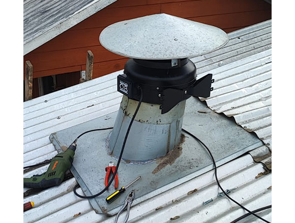 plástico ABS y eje montado sobre rodamientos de bola para 10.000 horas de trabajo. El equipo está provisto de una base para montaje en techo o pared, apto para trasegar humo de parrillas y quinchos de casa, con mas de 4 metros de ductos desde la fuente de calor y con campana provista de filtros metálicos.