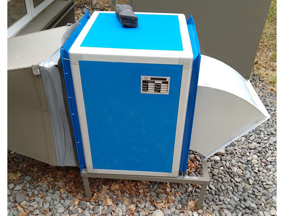 Caja de ventilación centrífuga, construida en chapa de acero galvanizada de 1.5 mm de espesor con acabado de cantoneras de aluminio. Extractor interior de tipo centrifugo, motor trifásico con protección IPX2, rodete de alabes tipo jaula de ardillas de alabes inclinados hacia adelante equilibrados dinámicamente. Motor eléctrico autoventilado con rodamiento de bola de engrase permanente y protector térmico incorporado. Entre sus principales usos; aulas de clase, salas de reunión, cafés, oficinas, bibliotecas y en general lugares donde el silencio es un factor preponderante. Gran versatilidad de instalación.